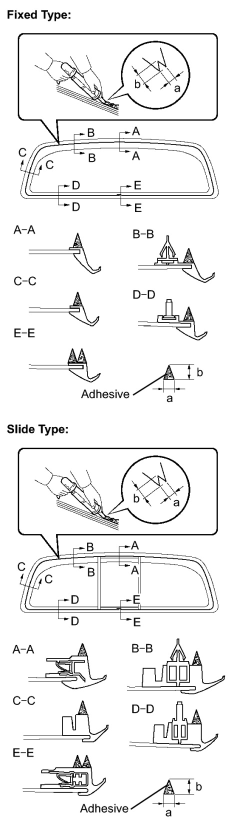 * Check that the vehicle body and windshield glass have a small gap between them.