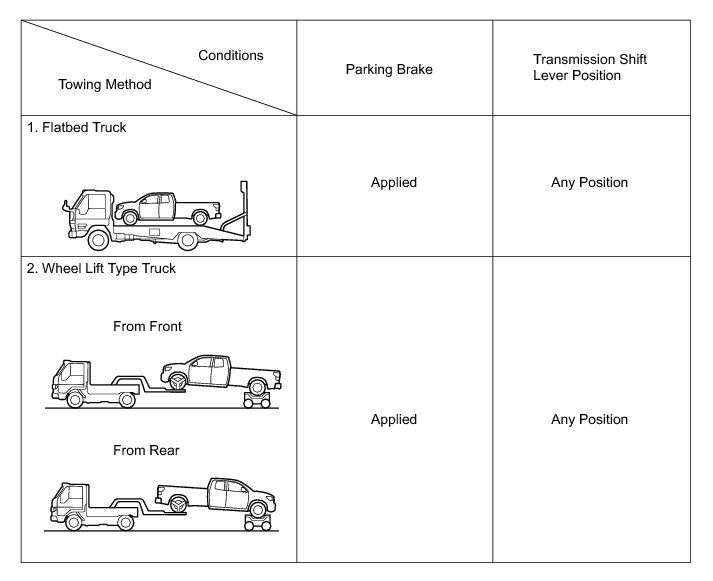 (1) Do not tow the vehicle with only 2 wheels on the ground.