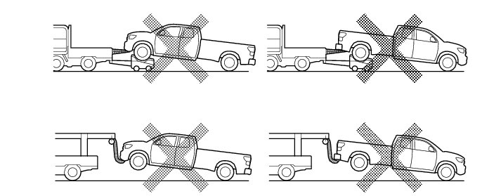 (d) The towing methods shown below are dangerous and can damage the vehicle, so do not use them.