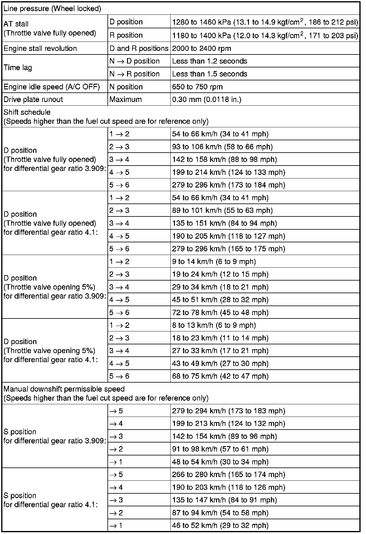 SERVICE SPECIFICATIONS: A760F AUTOMATIC TRANSMISSION: SERVICE DATA