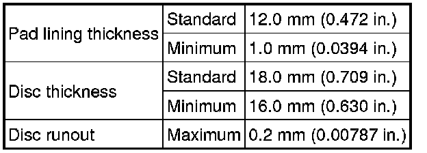 SERVICE SPECIFICATIONS: BRAKE: SERVICE DATA