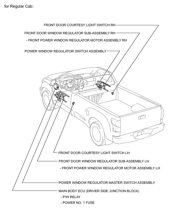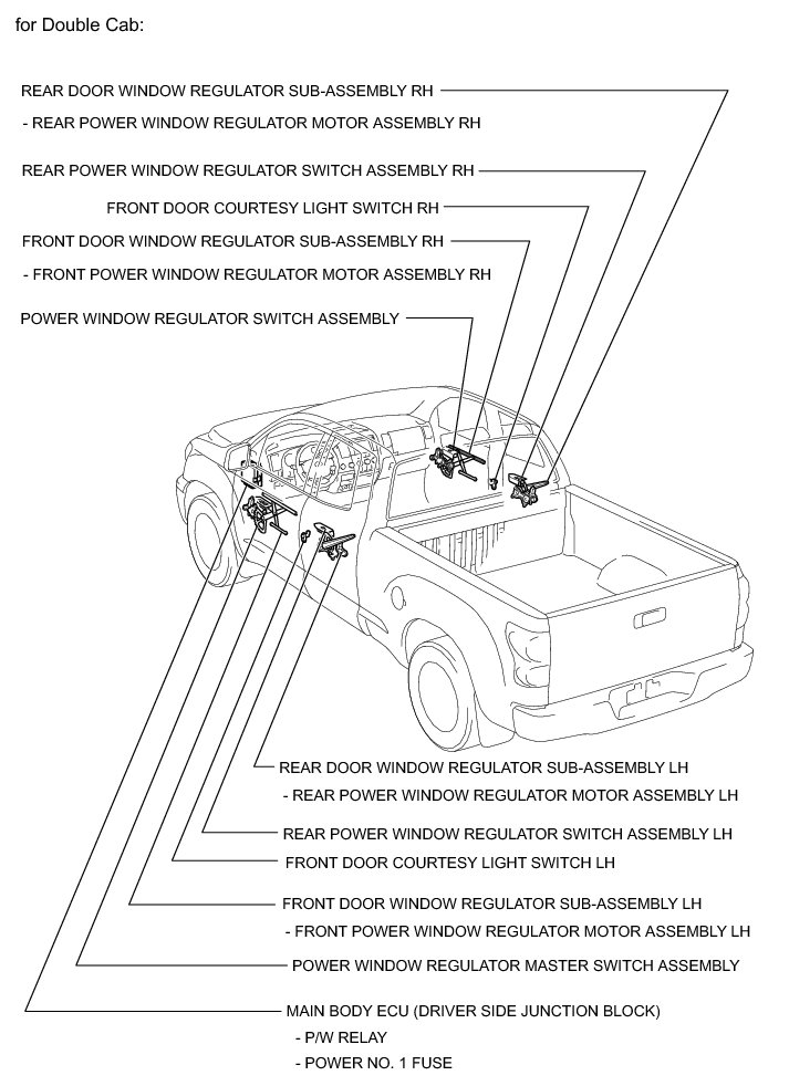 WINDSHIELD / WINDOWGLASS: POWER WINDOW CONTROL SYSTEM (w/o Jam Protection Function): PARTS LOCATION