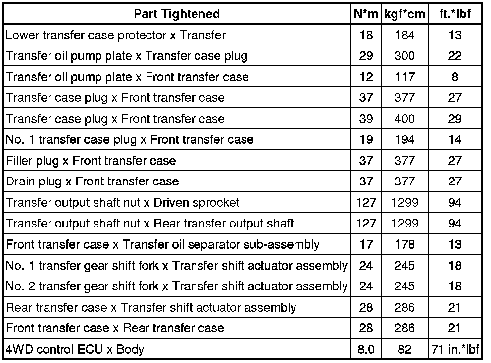 SERVICE SPECIFICATIONS: JF1A TRANSFER: TORQUE SPECIFICATIONS
