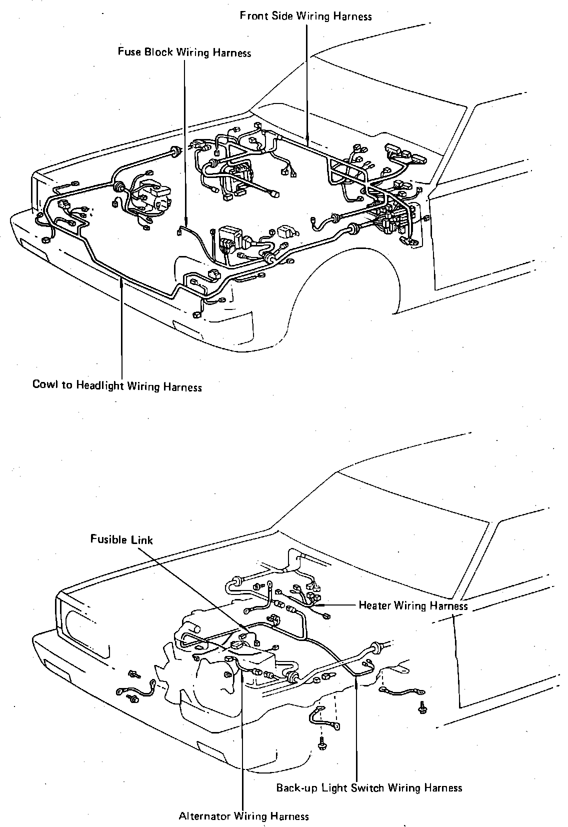 Engine Compartment Wiring Harness Locations.: