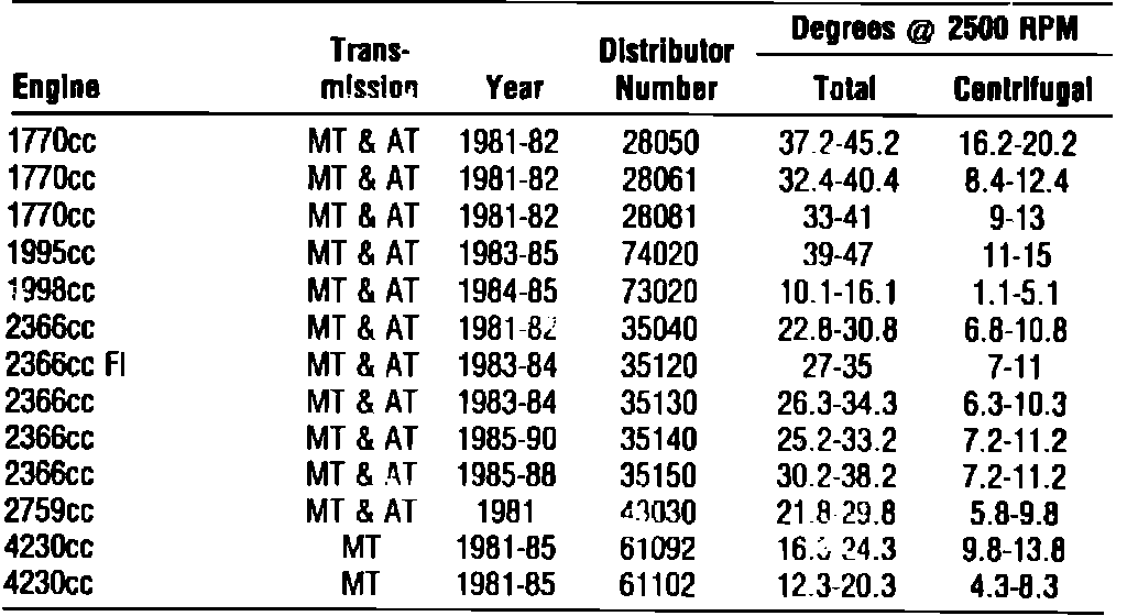 Fig. 20 Distributor Timing Advance Specifications: