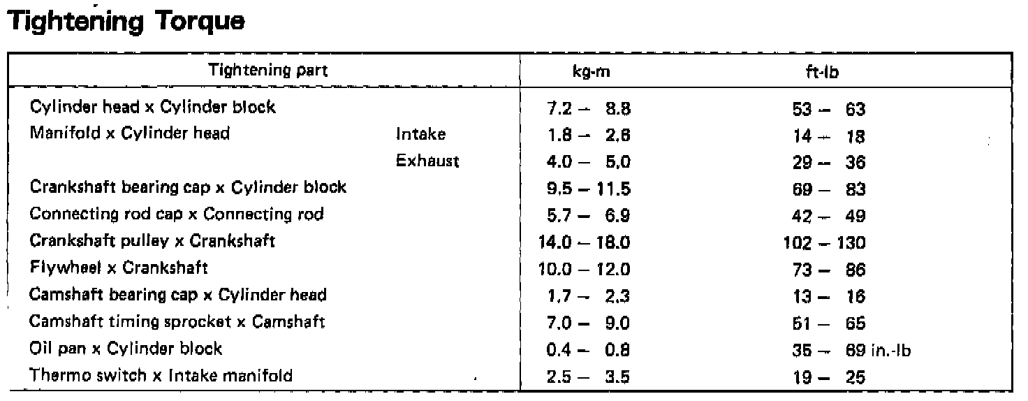 Torque Chart: