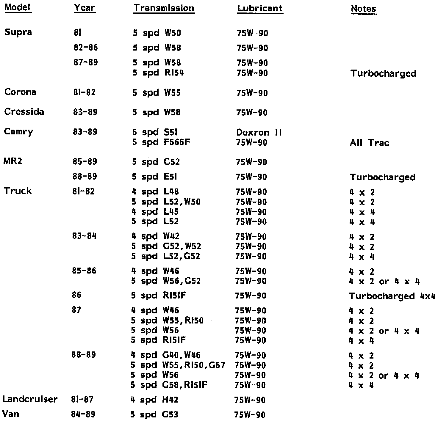 SUBJECT: TOYOTA - STANDARD TRANS.
