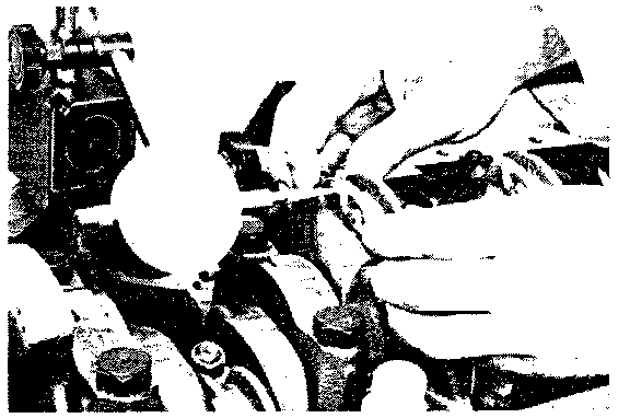 4. To prevent damage to the cylinder wall, cover the connecting rod bolts with a short piece of hose.