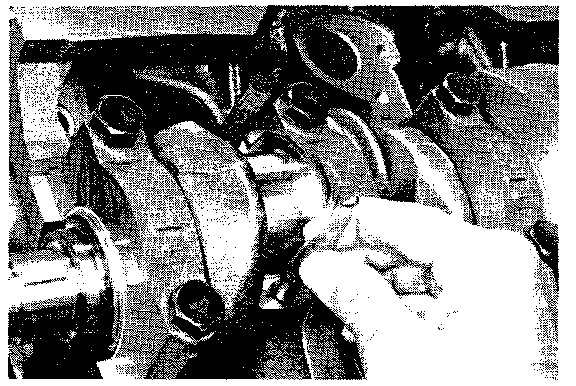 3. Place matchmarks on the cap and connecting rod. Remove the nuts, connecting rod end cap and lower bearing.