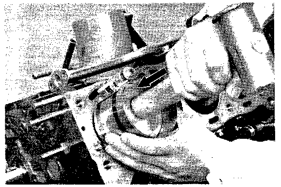 3. Push in the piston/connecting rod assembly with the notch facing forward as shown. The mark on the connecting rod should also face towards the front.