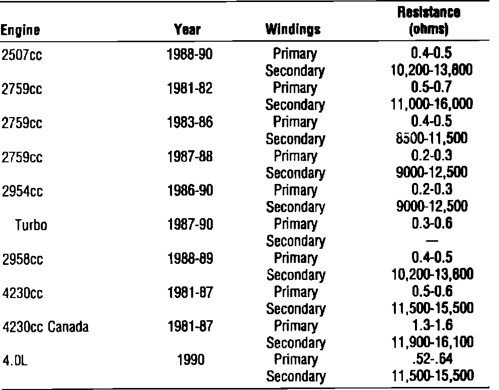 Fig. 13 Ignition Coil Specifications: