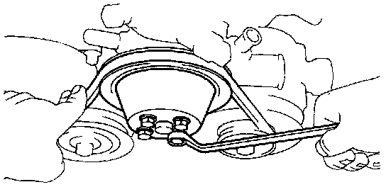 11. Install water pump pulley and drive belt. Place the drive belt on the water pump pulley and install the water pump pulley with the four bolts.