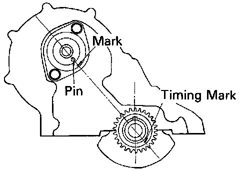 3. Align the camshaft dowel pin with the mark on the thrust plate.
