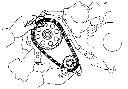 NOTE: Align the timing chain and crankshaft sprocket timing marks.