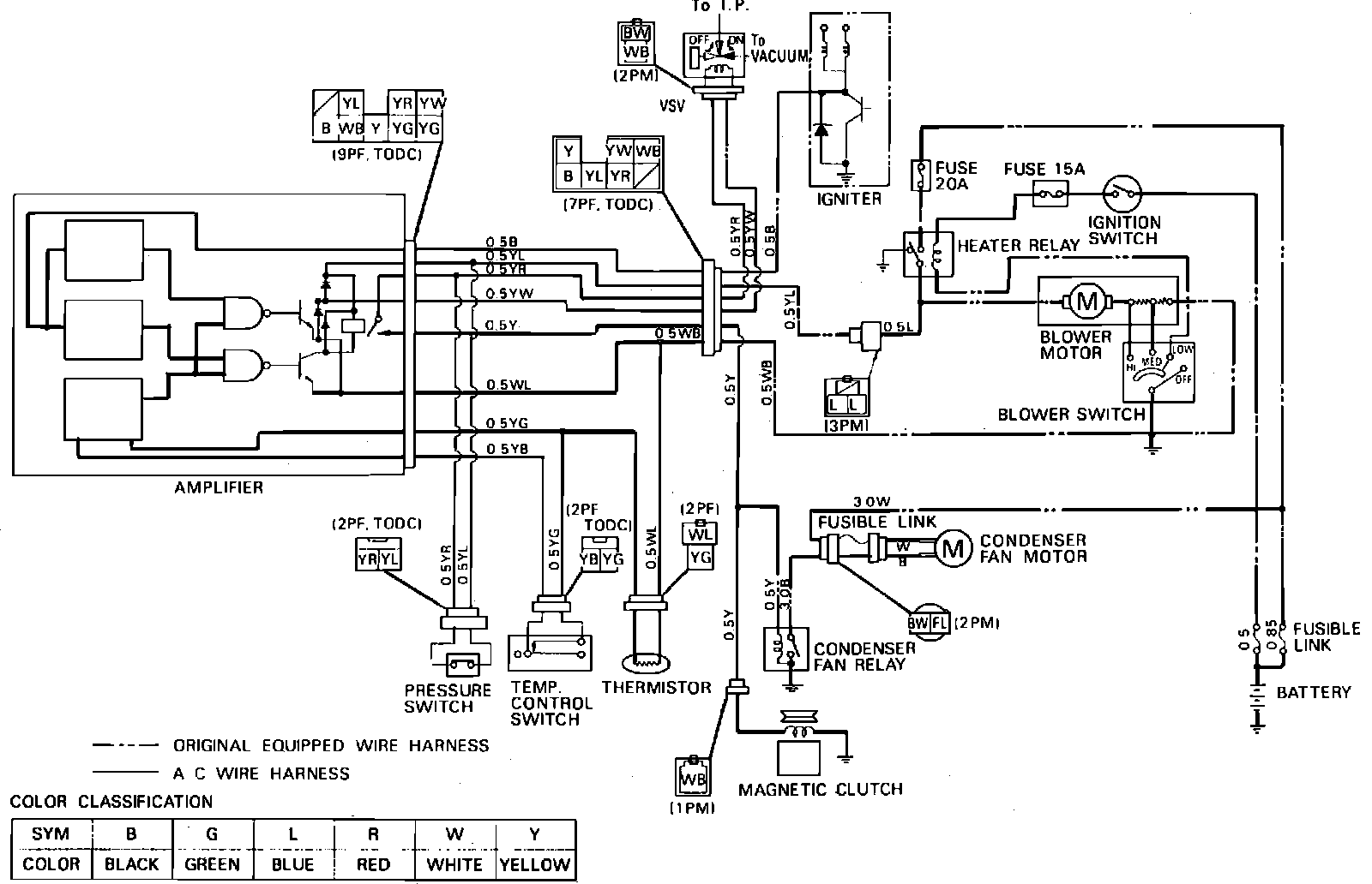 Fig. 33 Airconditioning wiring diagram, (with boost ventalator).: