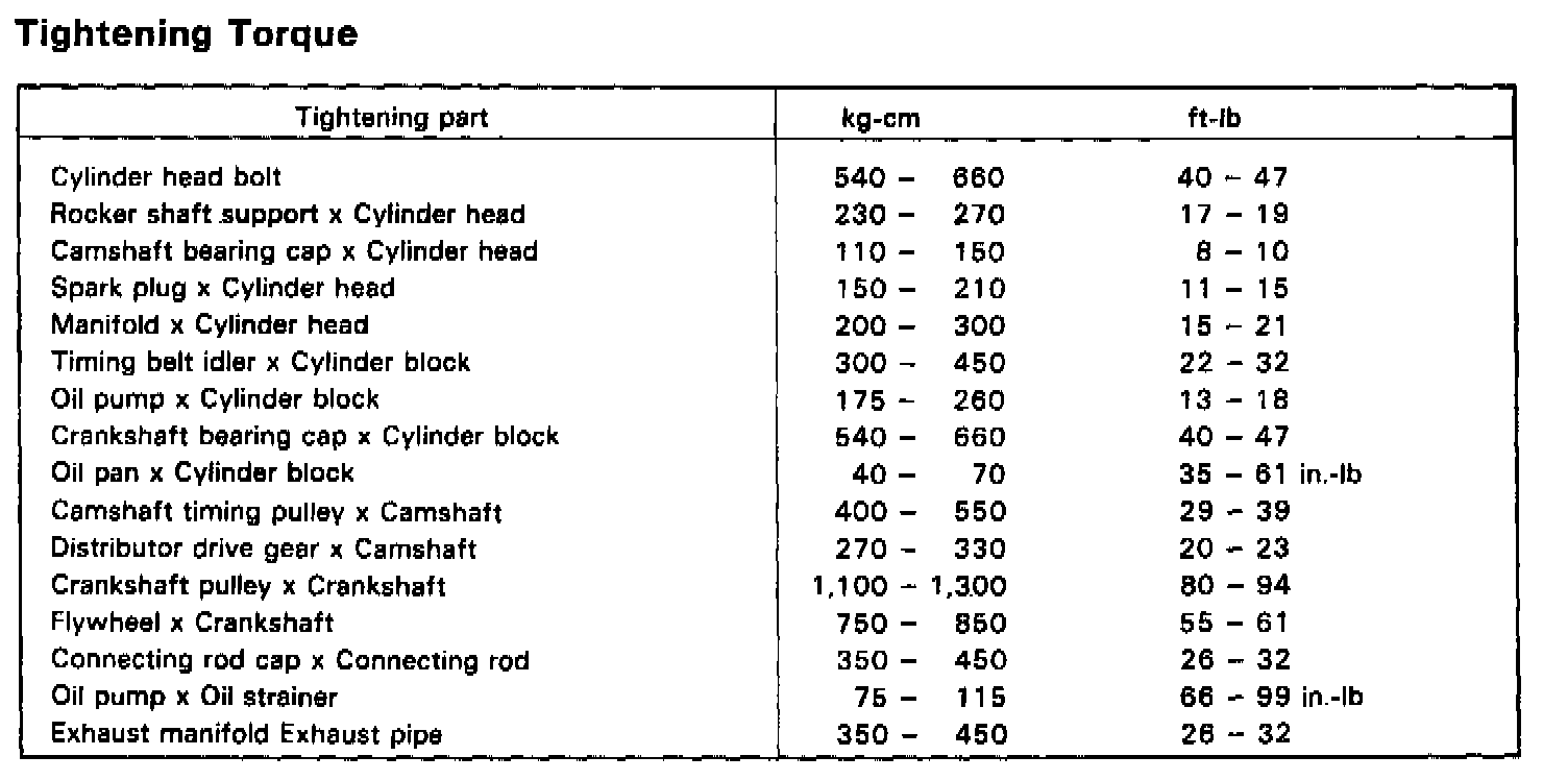 Torque Chart: