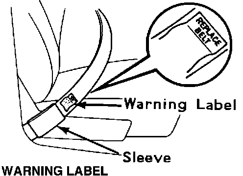 (Note:) Not all Toyota vehicles are equipped with this type of warning label. Therefore it may be necessary to replace a seat belt even when no label has been exposed due to a severe impact.