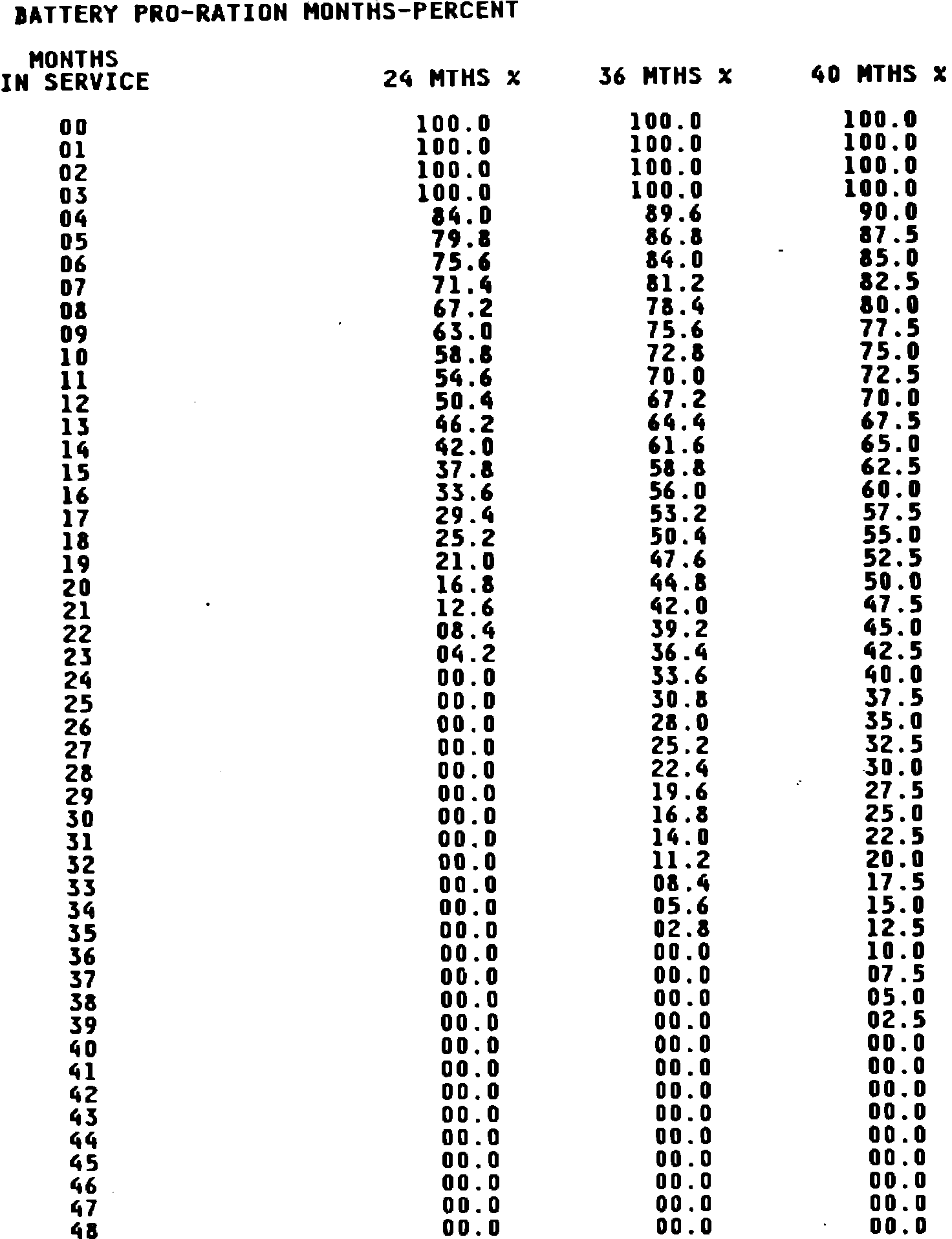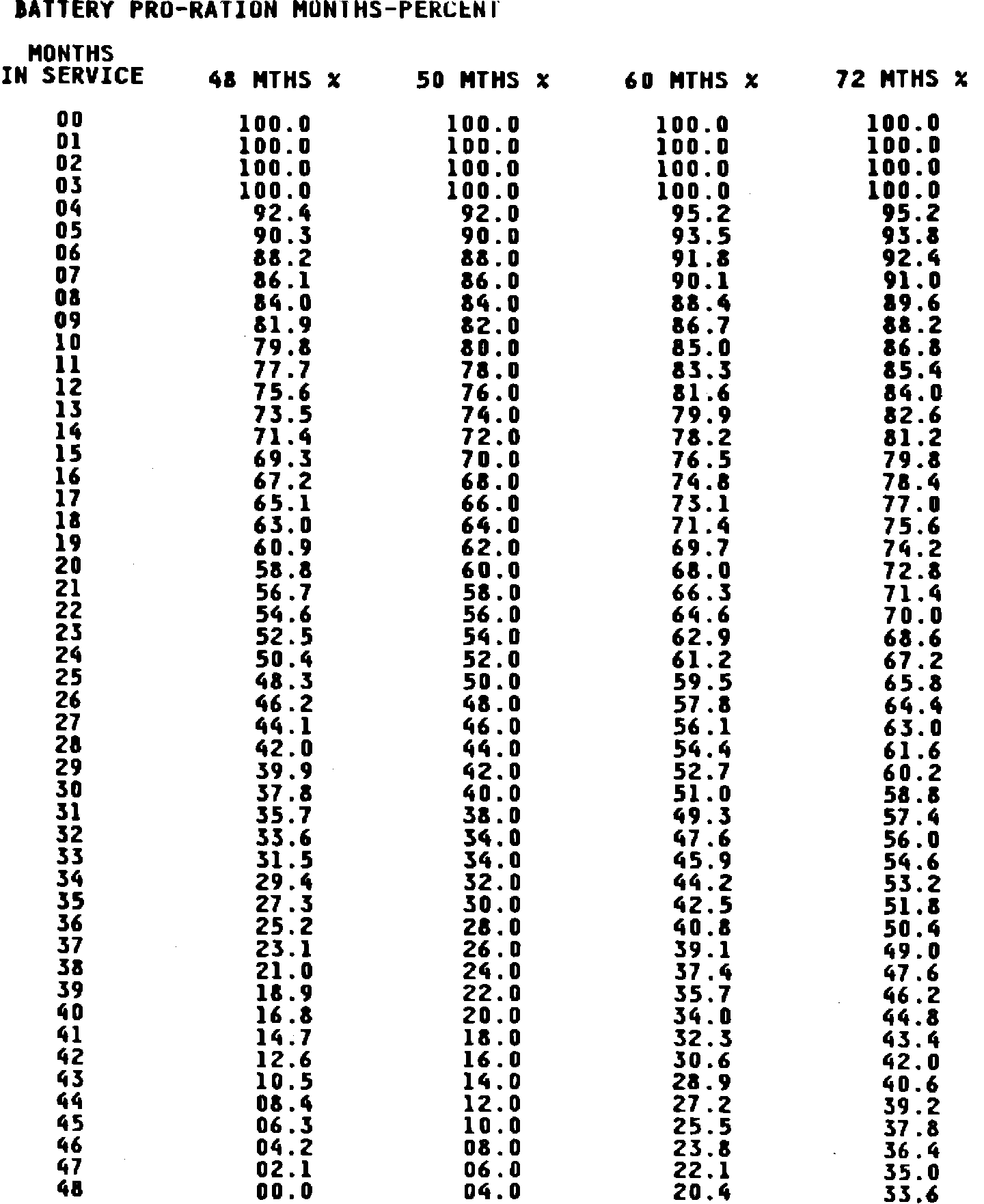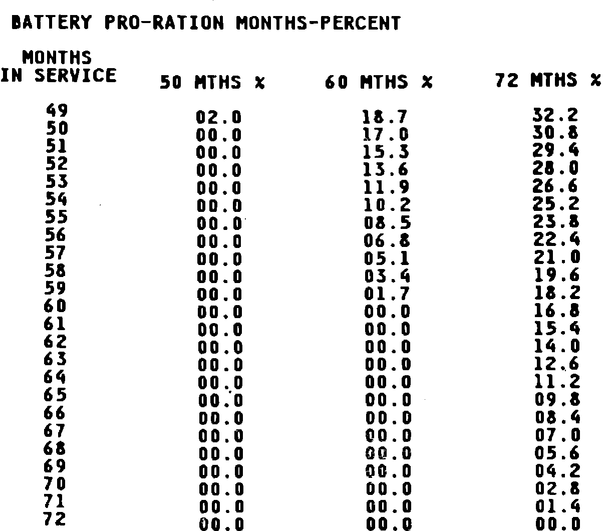 BATTERY PRO-RATION MONTHS-PERCENT