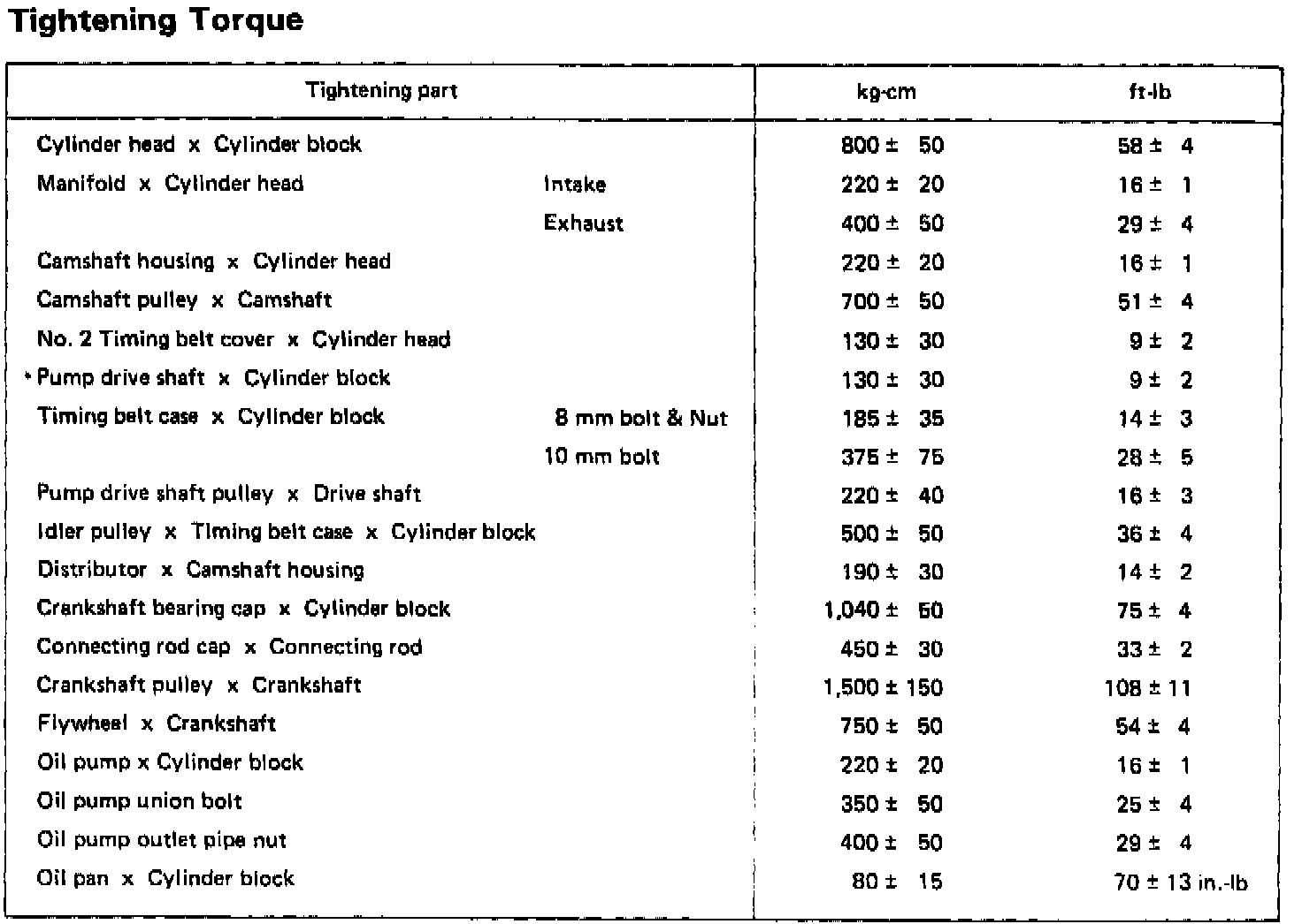 Torque Specifications
