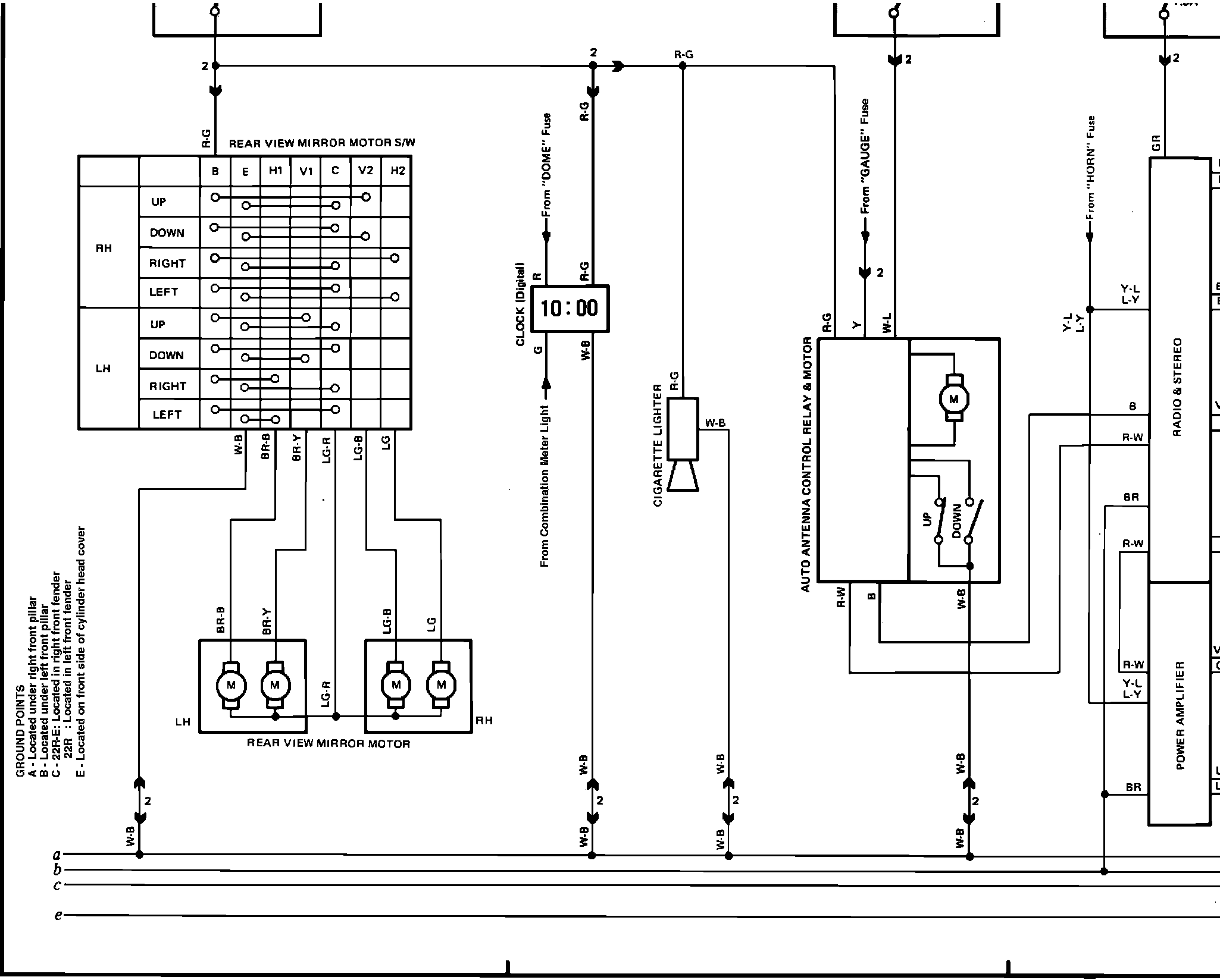 �rd�d|�d��d�d��d_�dFig. 11d Rear View Mirror, Clock, Cigar Lighter, Antenna Motor, Radio, EFI Option Power Supply, Starting System, Ignition System, Fuel System, and Charging System Wiring Diagram: