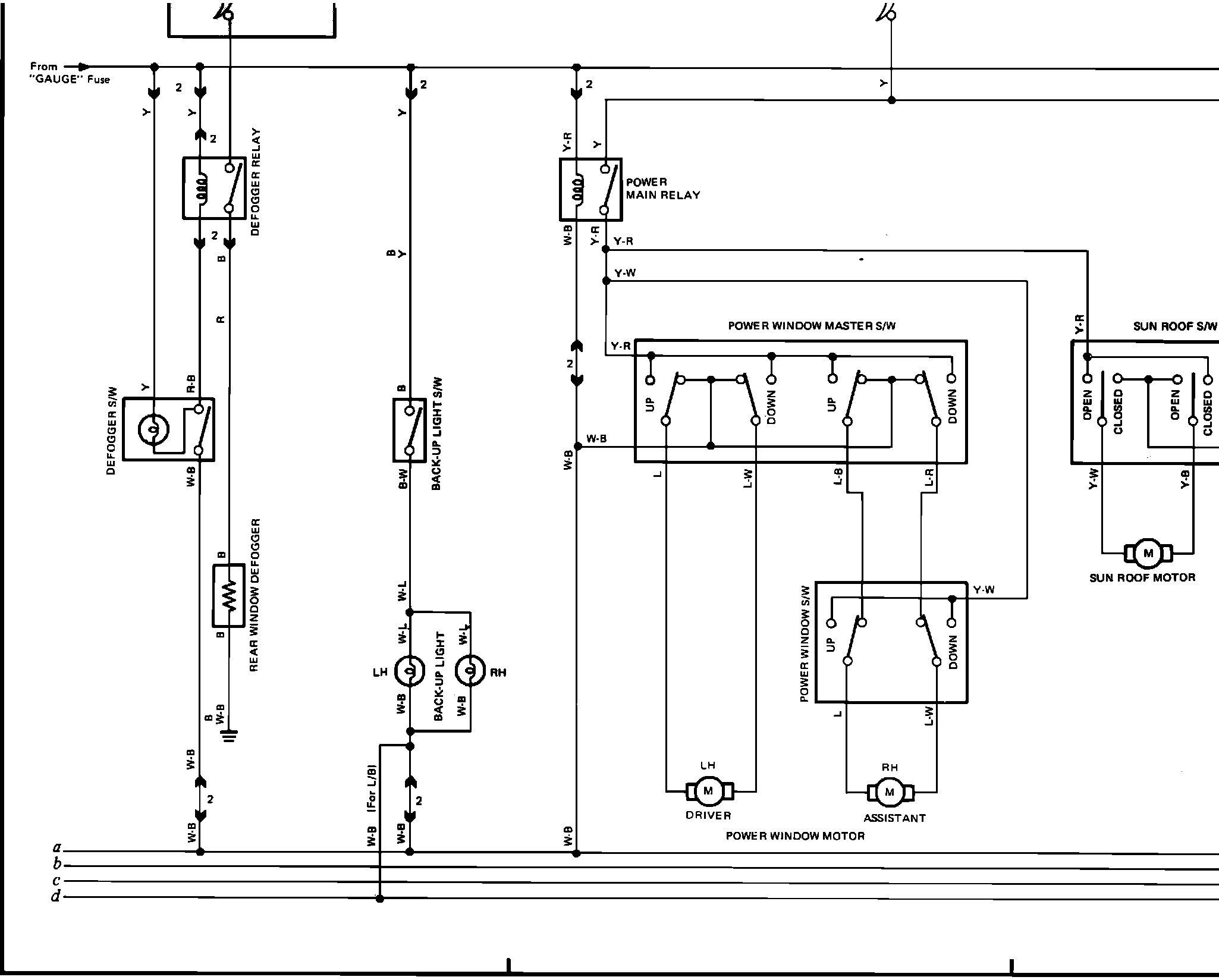 �,�F,�l,�n,Ђ,$�,9�,Fig. 11b Rear Defogger, Back-Up Light, Power Windows, Sun Roof, Power Door Locks, Overdrive, Cruise Control, Stop Light, Turn Signal, Hazard, and Horn Wiring Diagram: