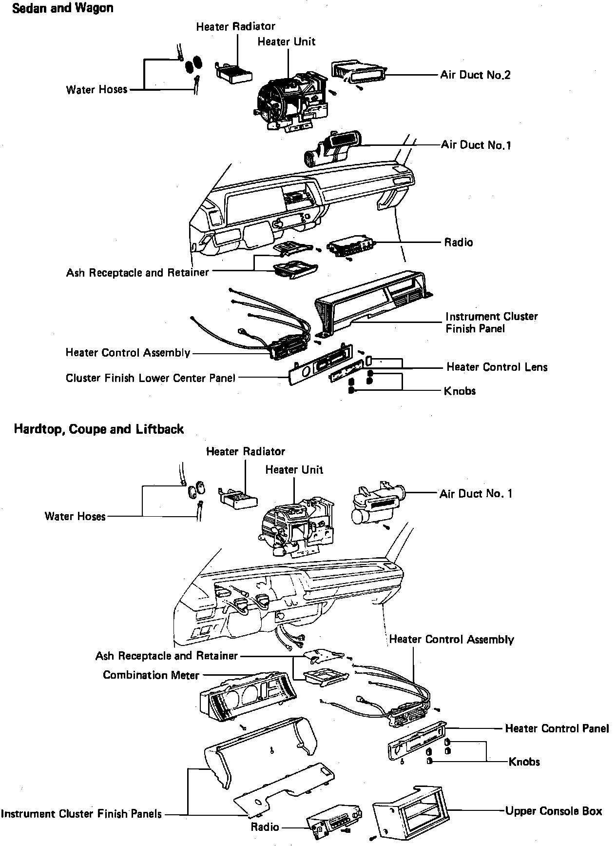 4. On sedan and wagon, remove radio, air duct No. 1 and air duct No. 2.