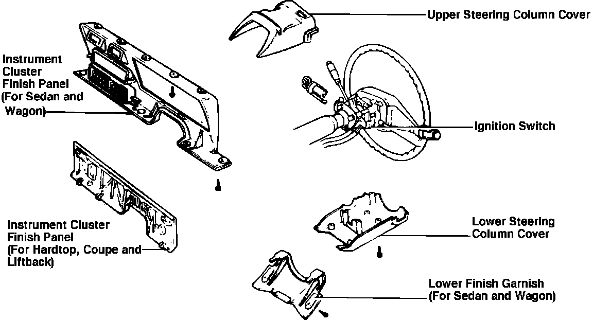 2. On sedan and station wagon models, remove instrument cluster finish panel, Fig. 9, lower finish garnish, upper and lower steering column covers. During removal of instrument cluster finish panel, do not bend the lower pawls.