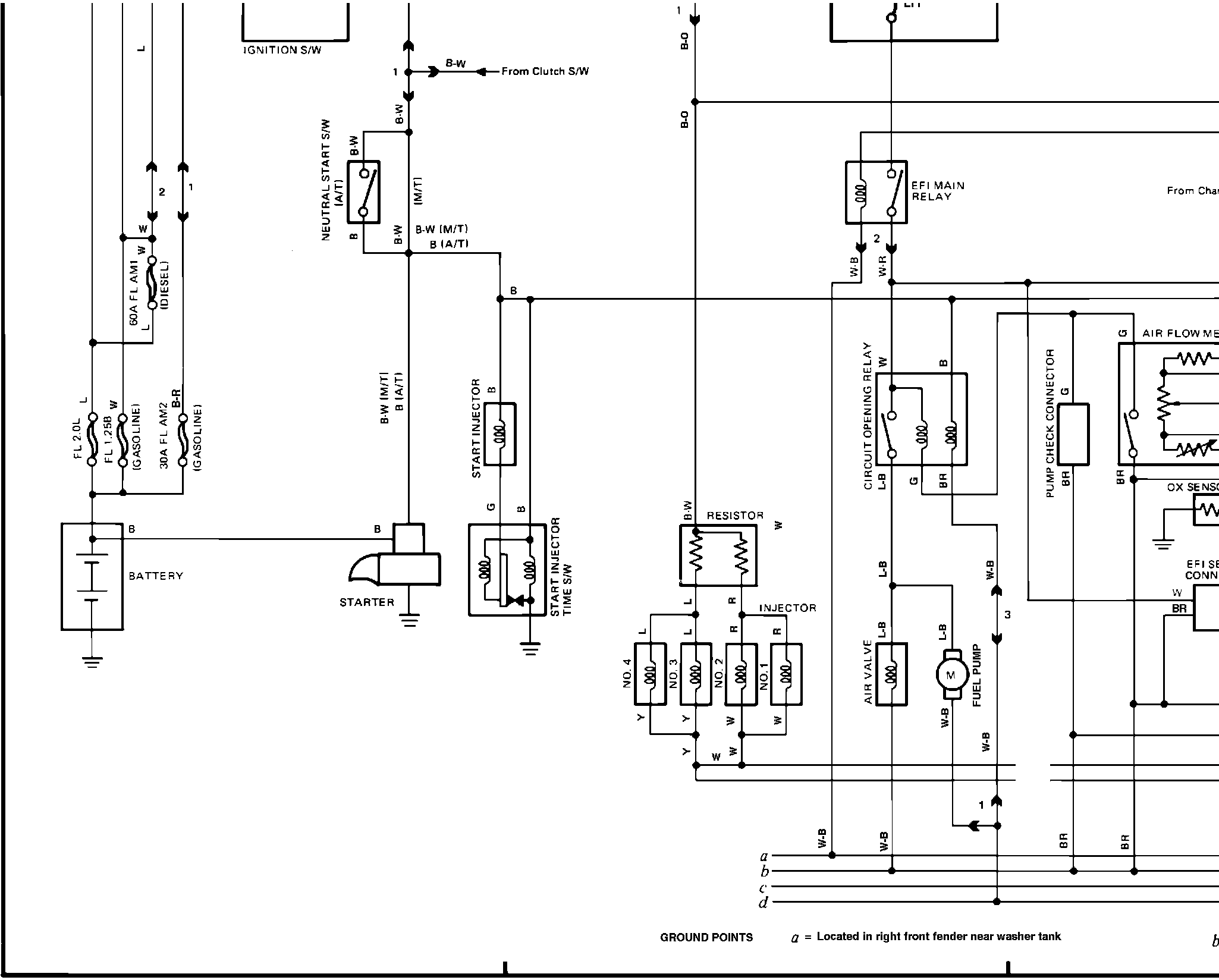 7��#��U�c�_p�x�g��Fig. 6a Power Supply, Starting System, Fuel System, Ignition System, Charging System, Engine Cooling Fan, and Heating and A/C Wiring Diagram: