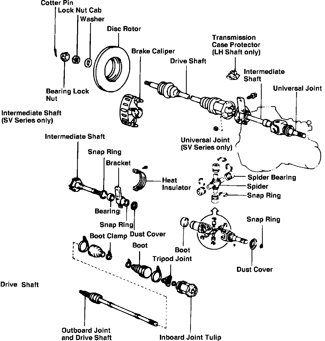 Fig. 4 Driveshaft, intermediate shaft & universal joint. 1984 Camry: