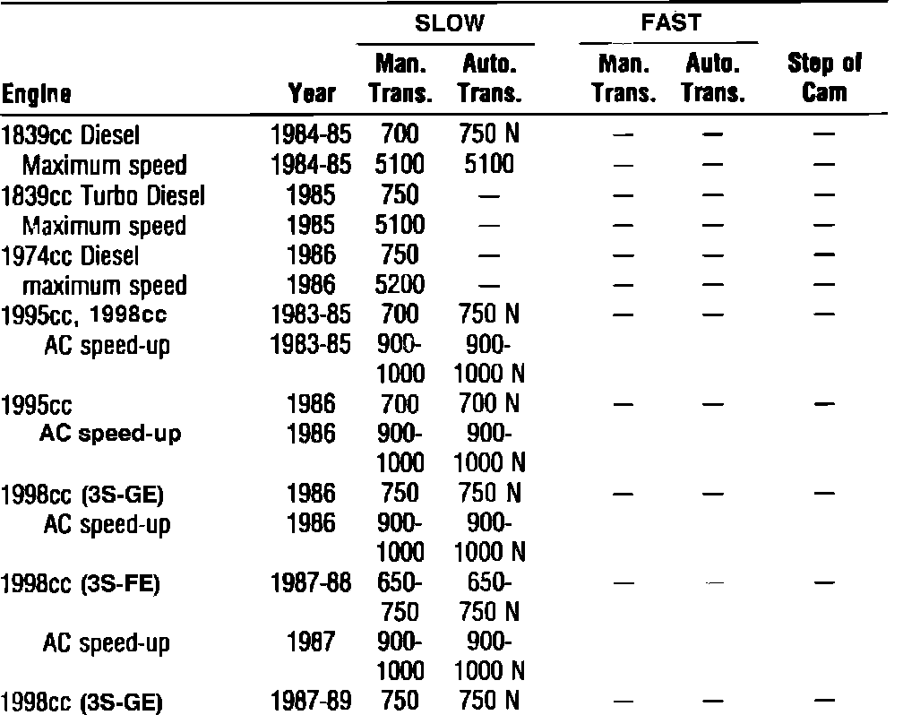 Fig. 7 Idle Speed W/O Computer Control Specifications: