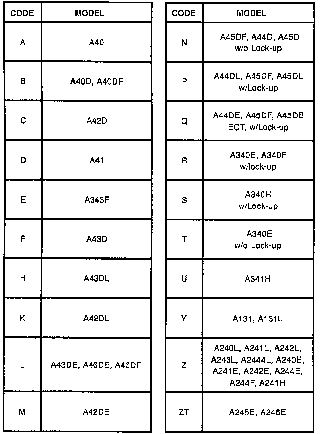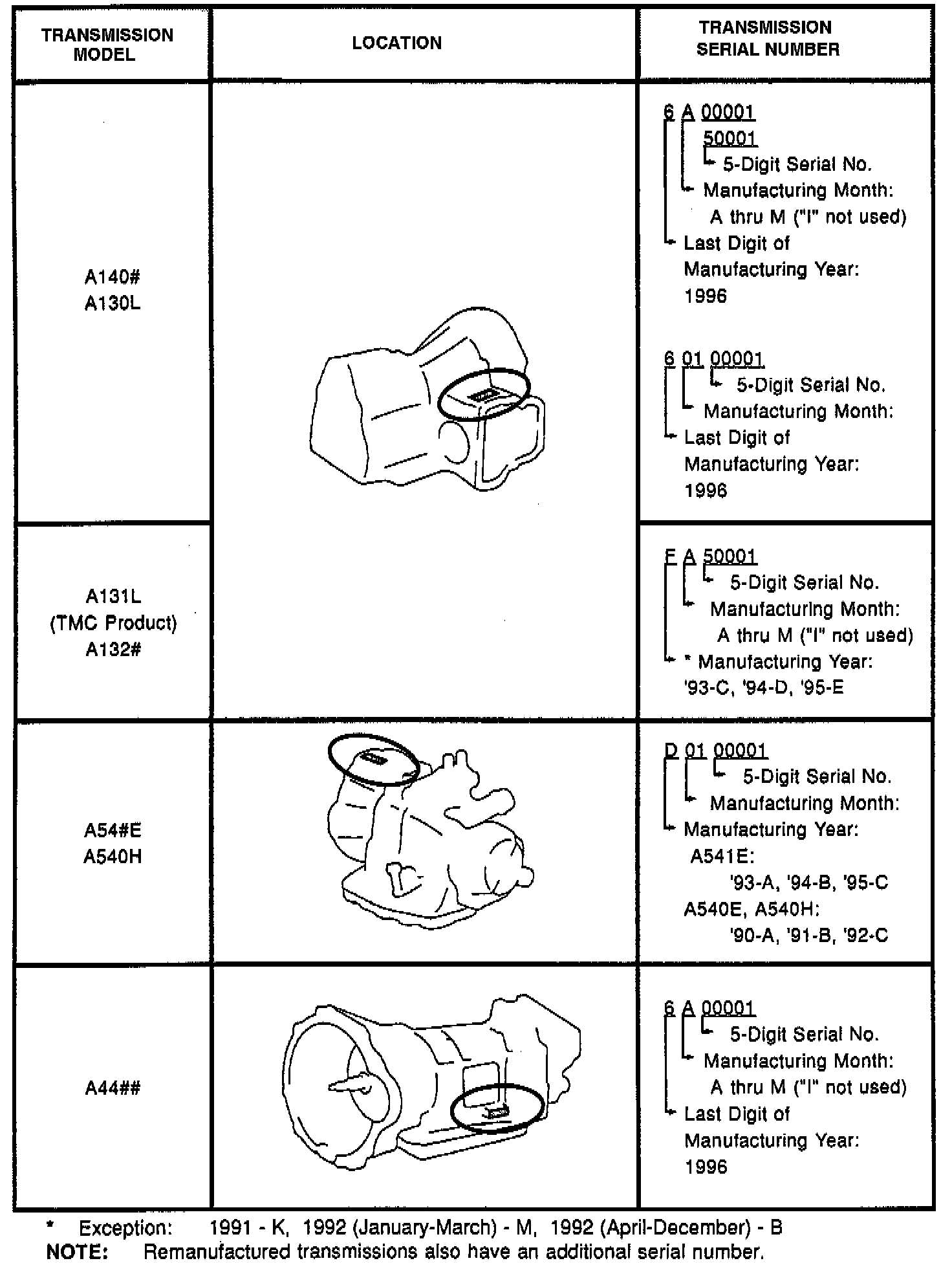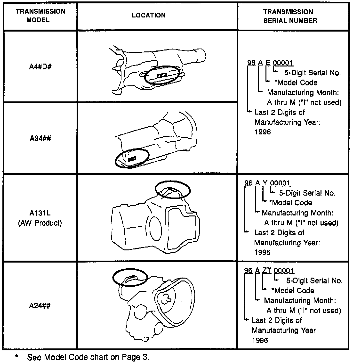 Title: AUTOMATIC TRANSMISSION SERIAL NUMBERS