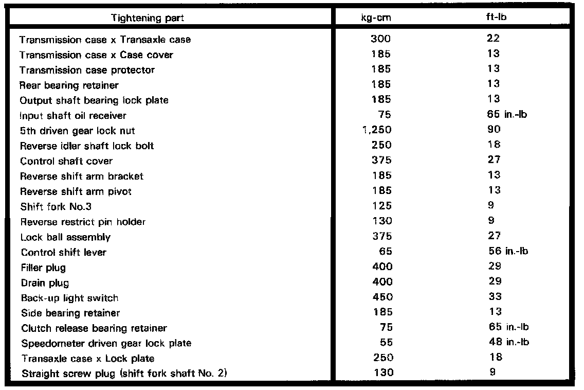 S50 5-spd M/T, Transmission Torque: