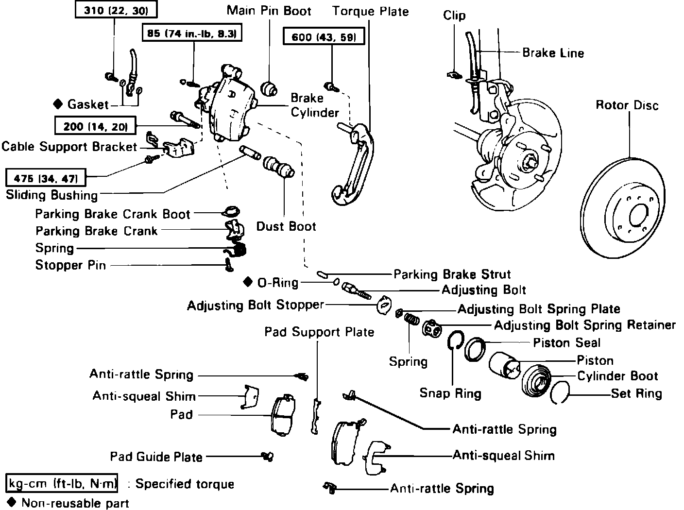 Fig. 25 Rear disc brake assembly. MR2 models: