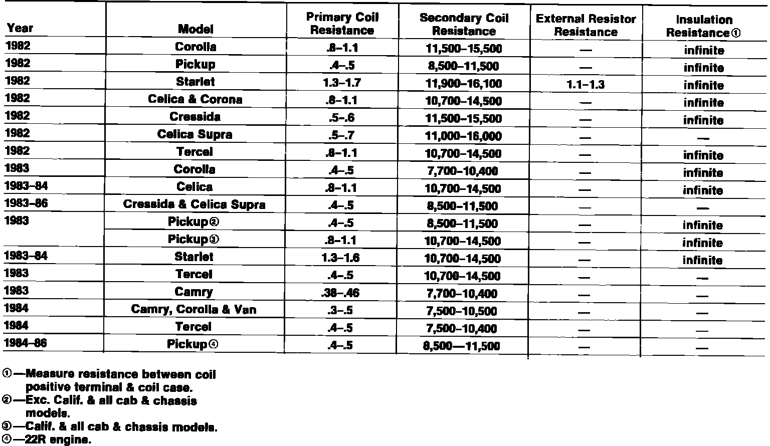 Fig. 5 Ignition coil resistance specifications: