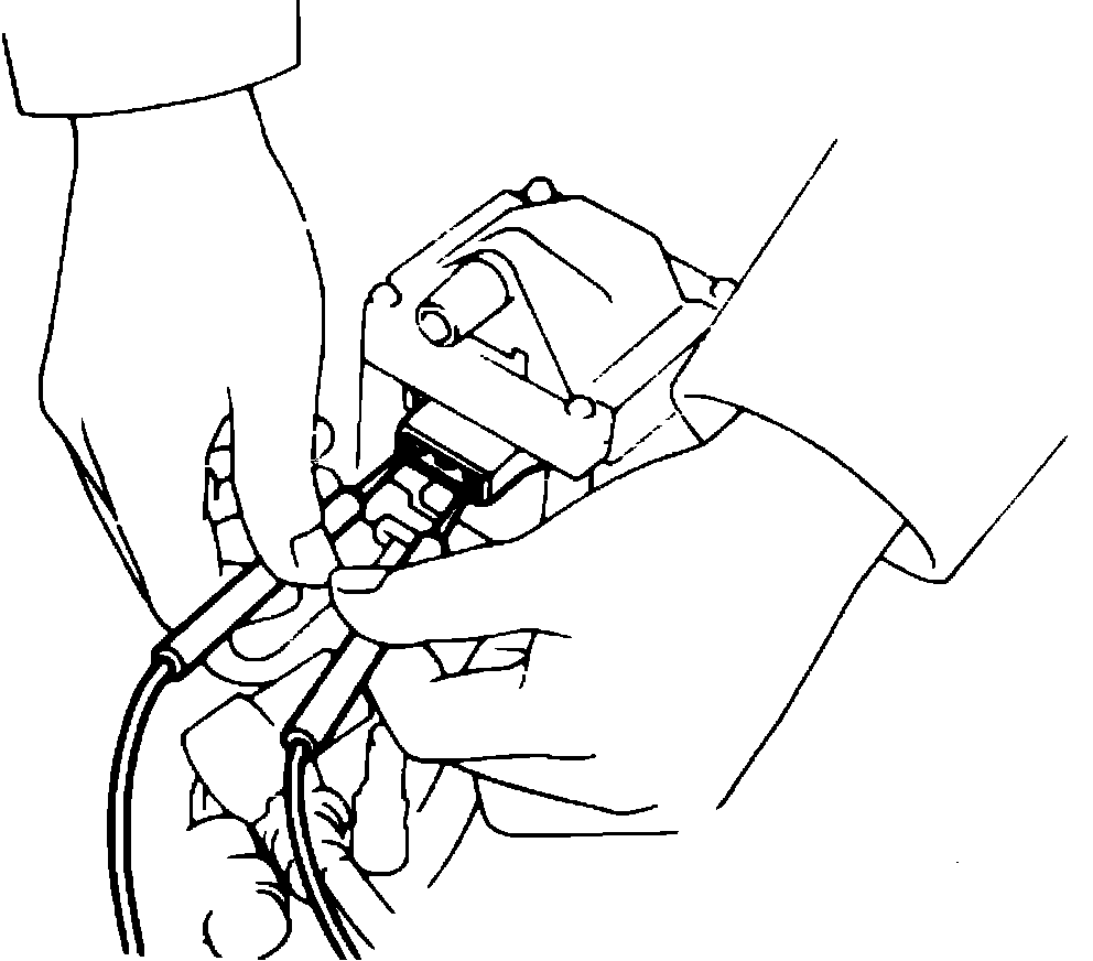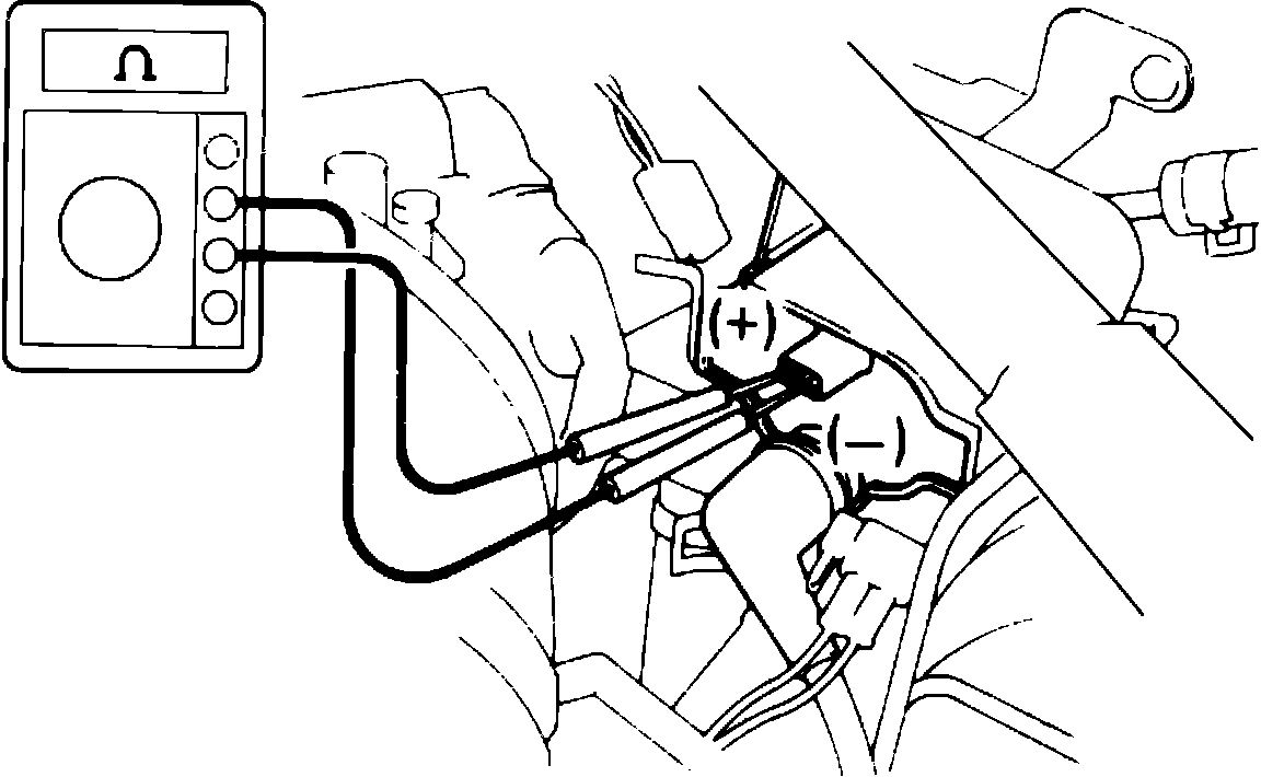 Fig. 2 Checking ignition coil primary resistance (brown wire is positive, black wire is negative):