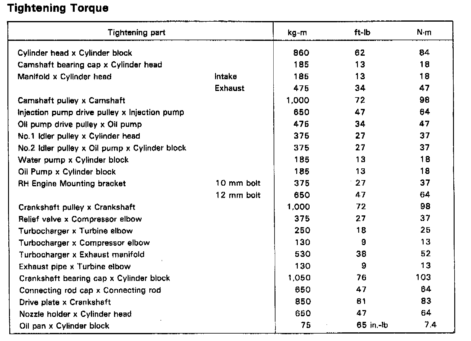 Torque Chart Diesel: