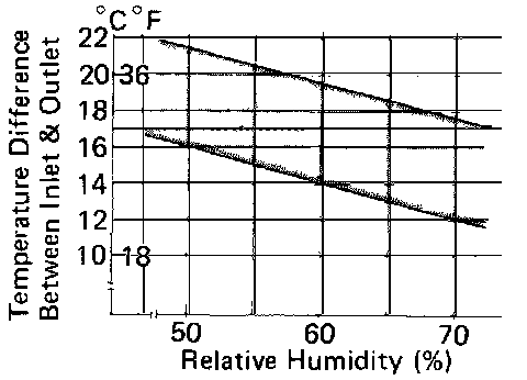 After measuring the temperatures of wet- and dry.bulb thermometers at the evaporator air inlet, relative humidity (%) can be obtained.