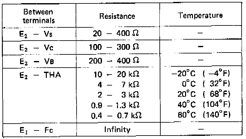 NOTE: Resistance between terminals E2 and Vs will change in a wave pattern as the measuring plate slowly opens.