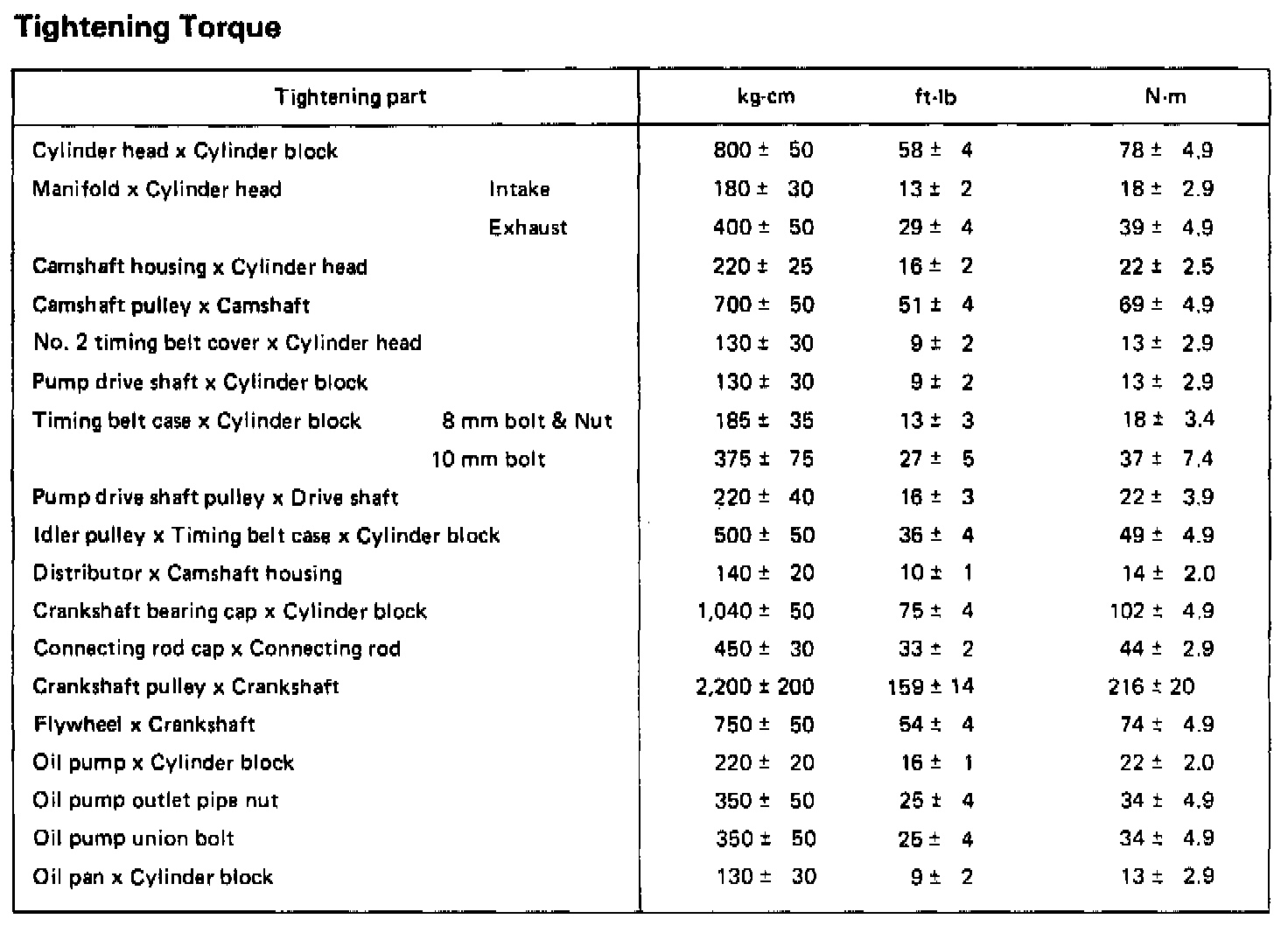 Torque Specifications