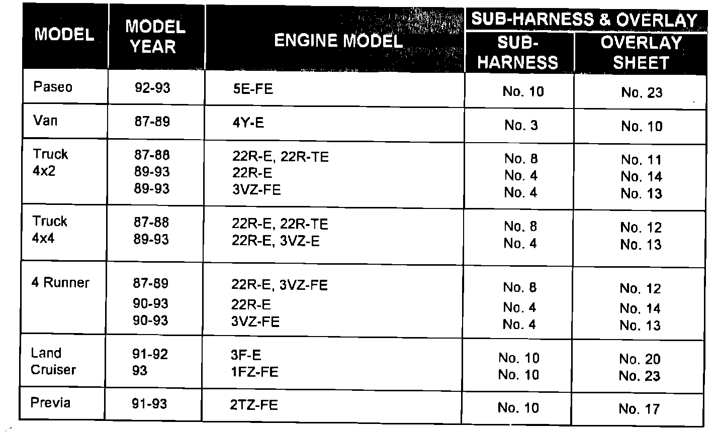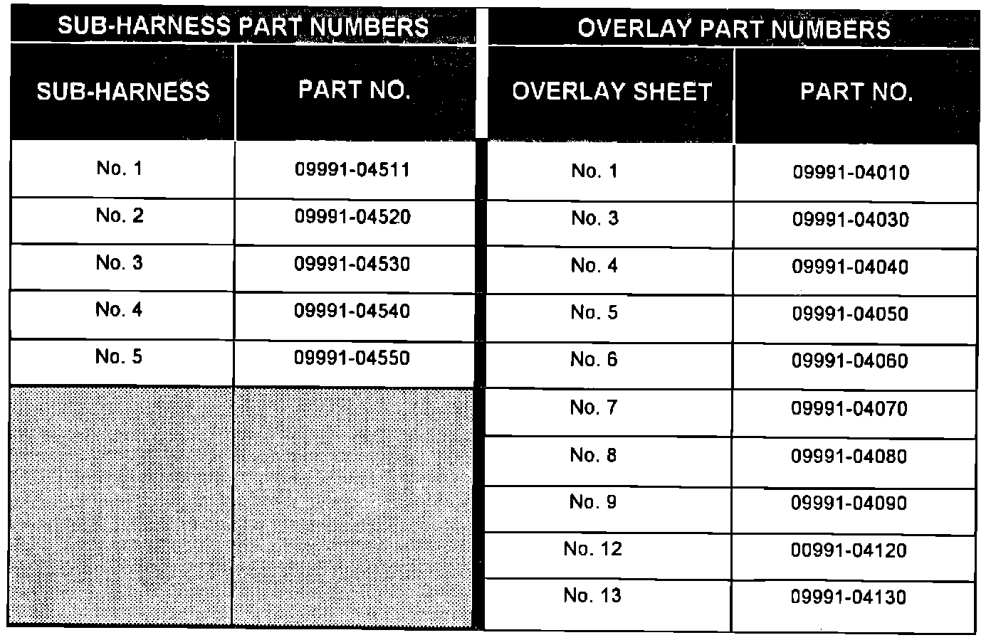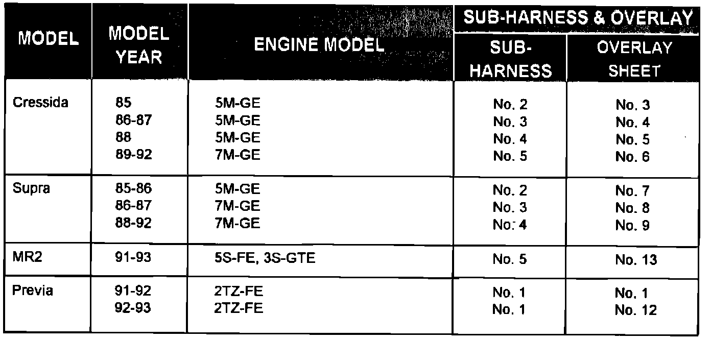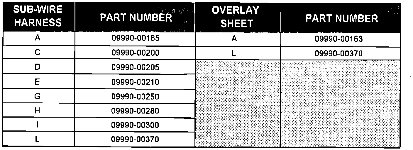 ABS CHECKER SUB-WIRE HARNESS AND OVERLAY SHEET PART NUMBERS: