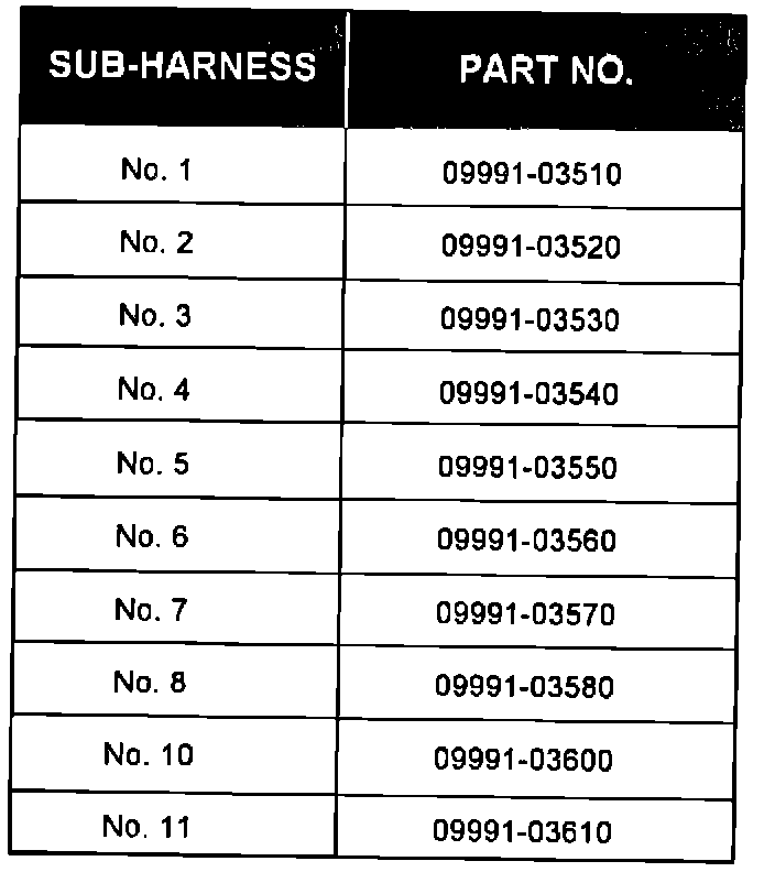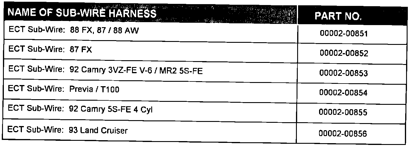 ECT CHECKER SUB-WIRE HARNESS PART NUMBERS: