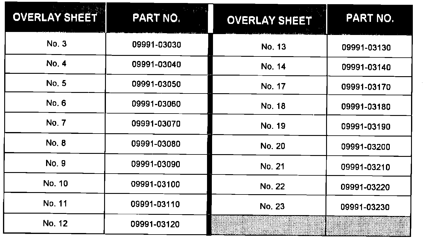 CRUISE CONTROL CHECKER OVERLAY PART NUMBERS: