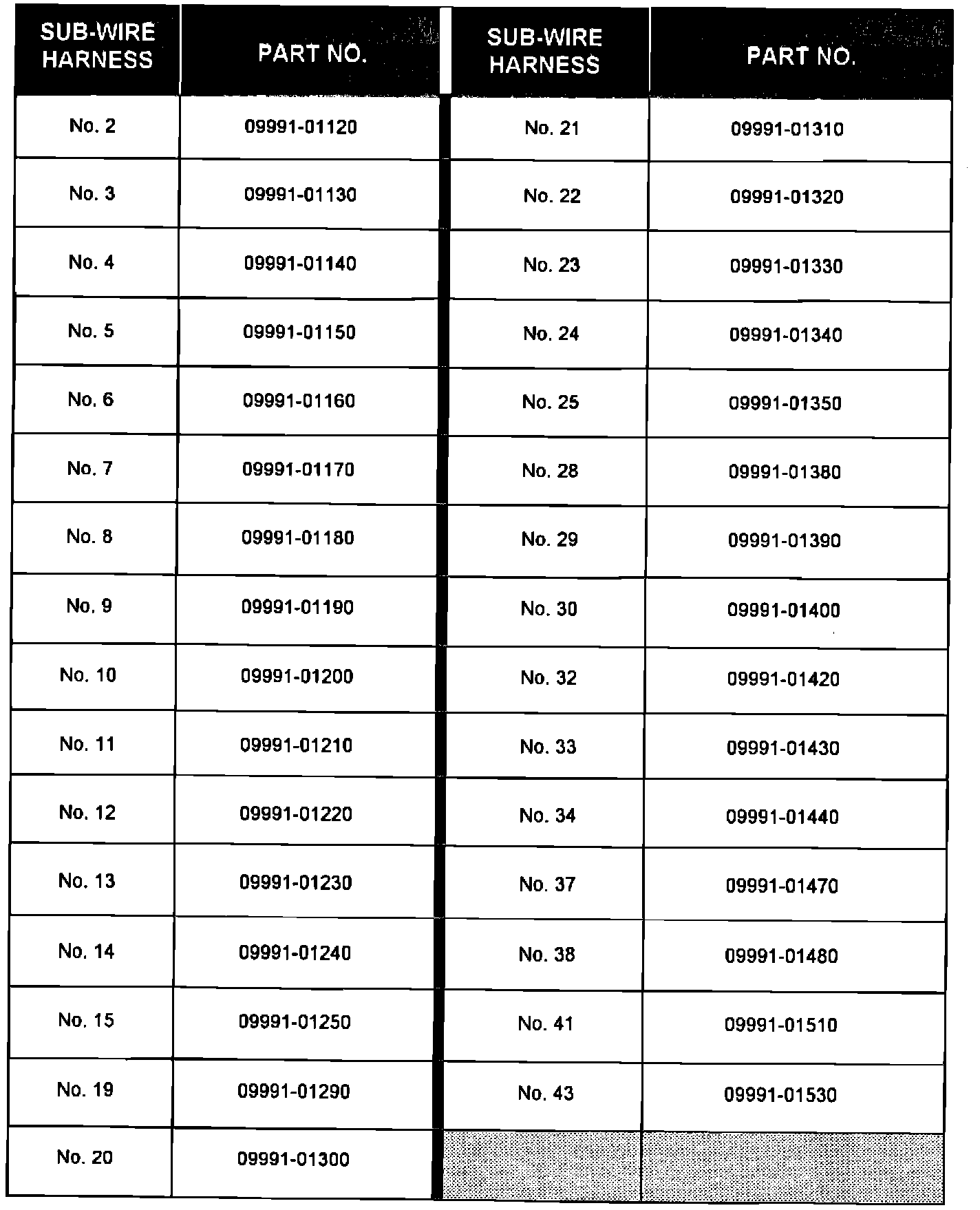 TCCS CHECKER SUB-HARNESS PART NUMBERS:
