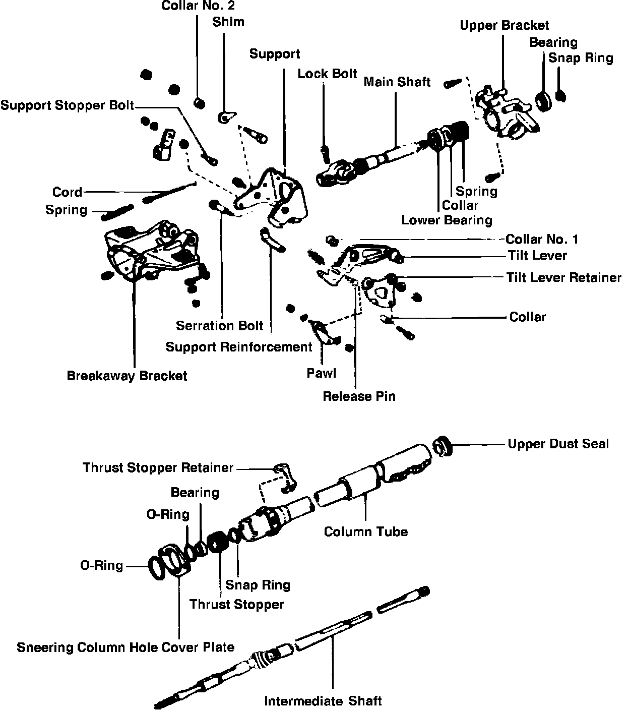 Fig. 7 Exploded view of steering column. 1984-88 Corolla: