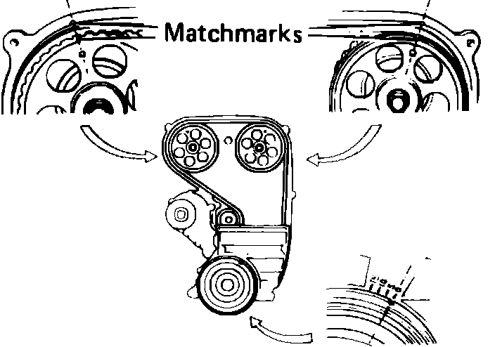 Fig. 107 Aligning marks on No. 2 timing belt cover with marks on camshaft sprockets. 5M-GE engine: