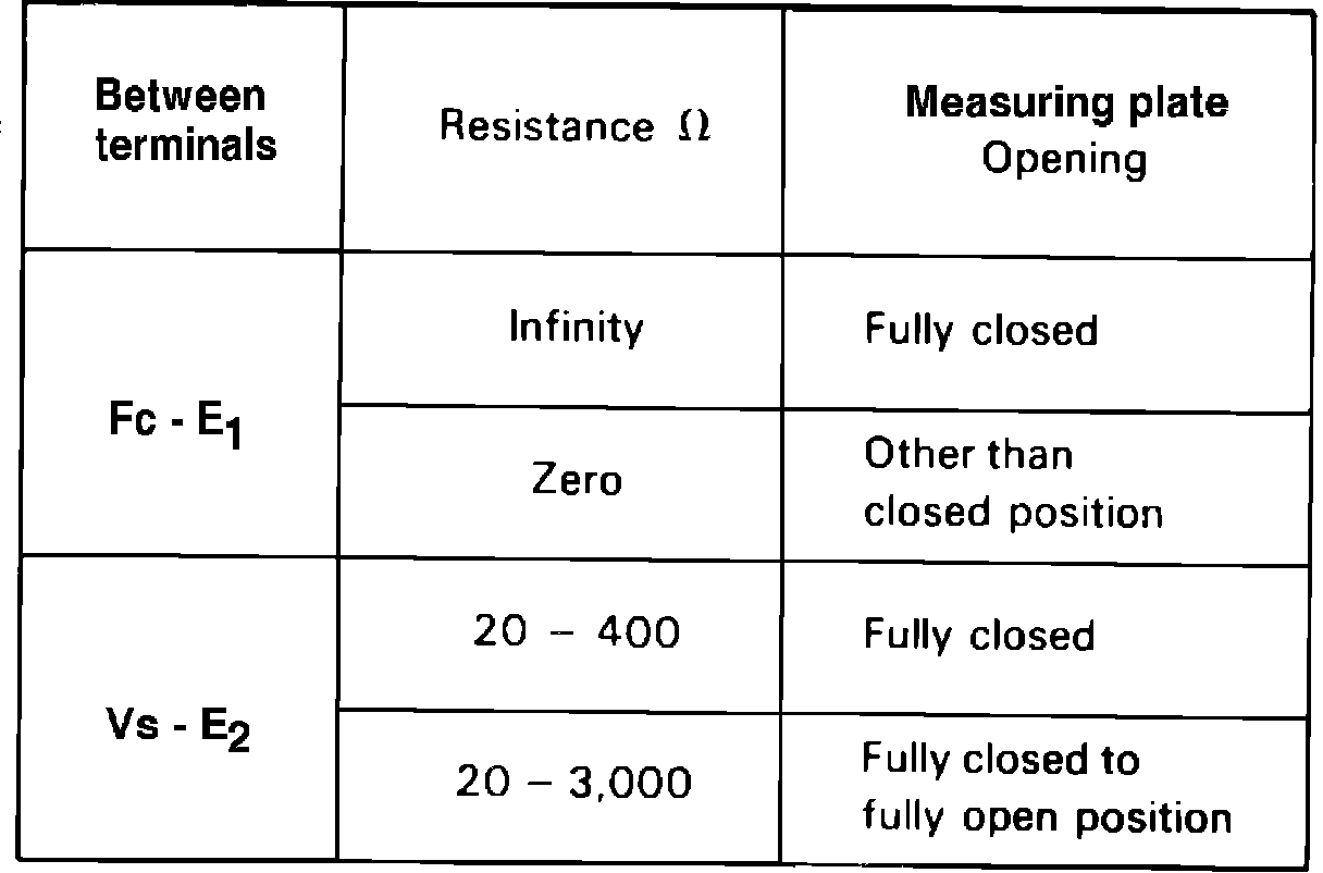 Fig. 56 Air flow meter test specifications w/unit removed.: