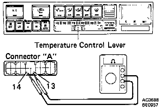 1. Measure the resistance between terminals A13 and A14 for each lever position.