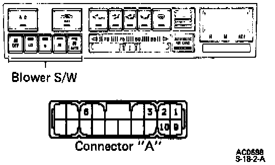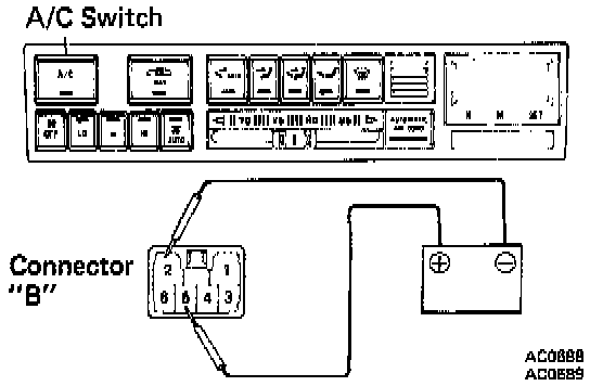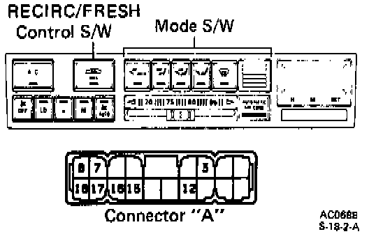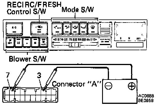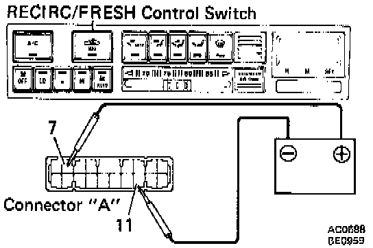 a. With the positive (+) battery lead connected to terminal A7 and the negative (-) battery lead connected to terminal All, check that the RECIRC indicator light comes on.