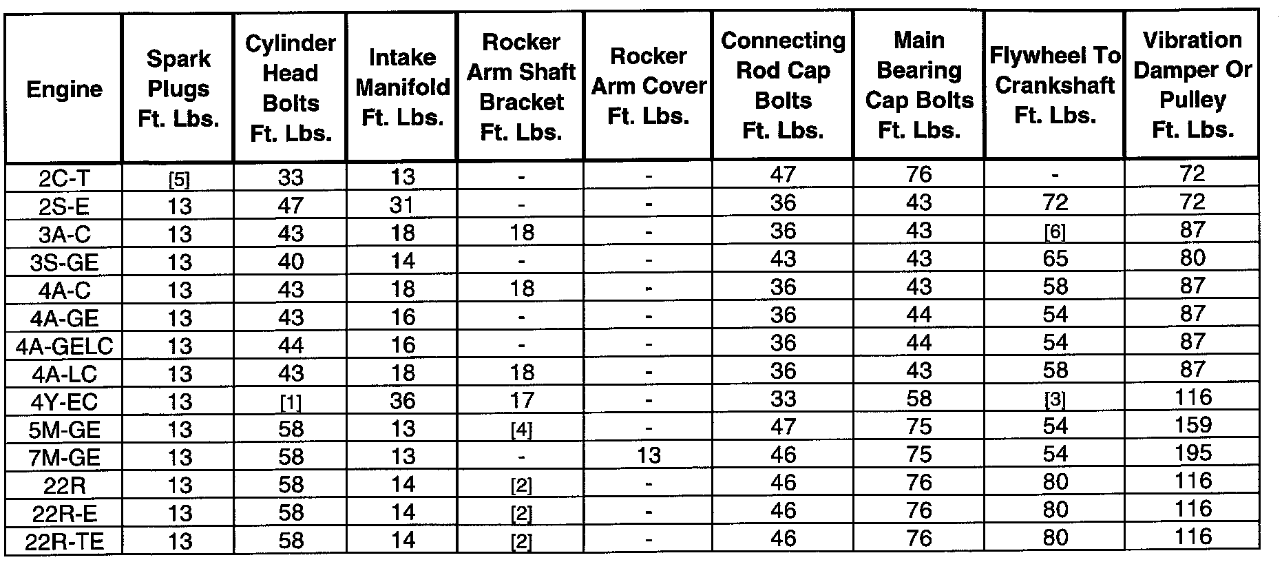 12- 3S-FE, 72 ft.lbs. ;3S-GE, 65 ft.lbs.