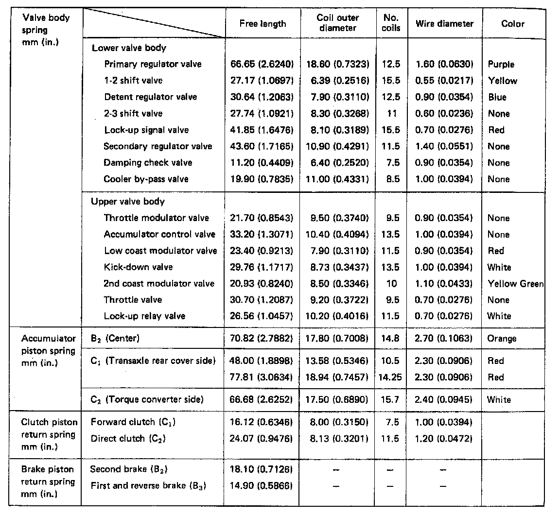 A131L 3-spd A/T, Valve Body/Spring Clearances: